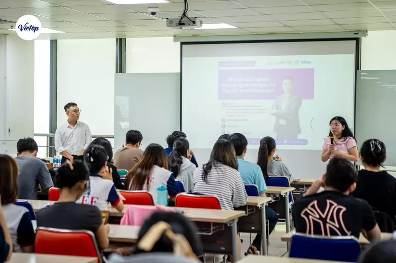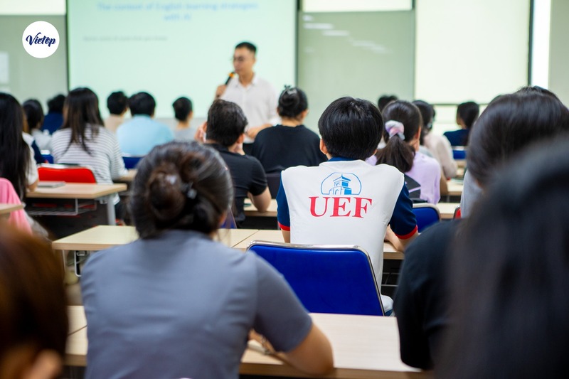 Sáng 08/10/2025, tại UEF, Trung tâm Anh ngữ Vietop English đồng hành cùng Trường Đại học Kinh tế – Tài chính TP.HCM (UEF) trong buổi English Workshop 2 với chủ đề “Effective English Learning Strategies in the AI-mediated Era”, mang đến góc nhìn thực tế và cảm hứng học tiếng Anh trong thời đại AI.